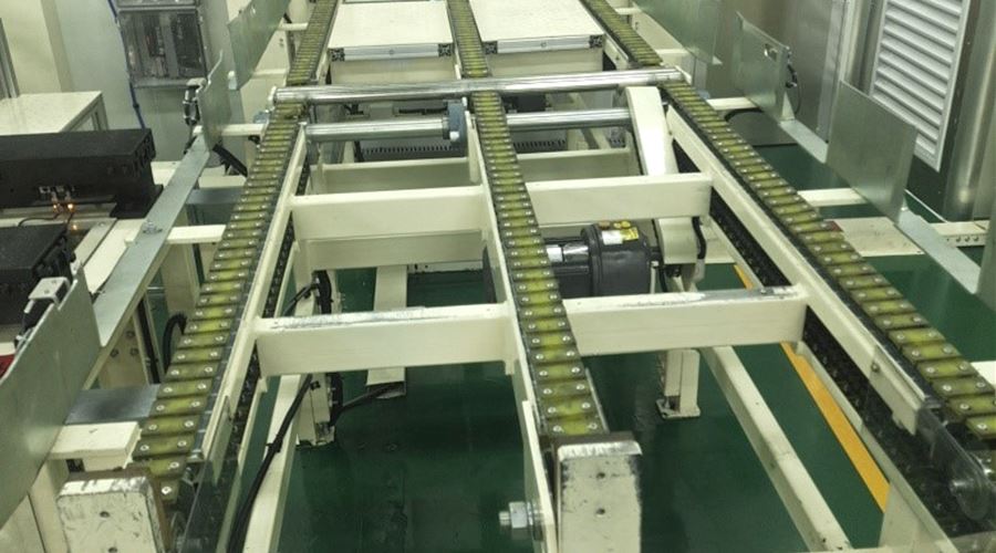 链条输送线也可称为链条线。链条输送线是以链条作为牵引和承载体进行输送物料的设备,链条可以朵用普通的套筒滚子输送链,也可朵用其它各种特种链条(如积放链,倍速链)。链条输送线主要输送托盘、大型周转箱等。